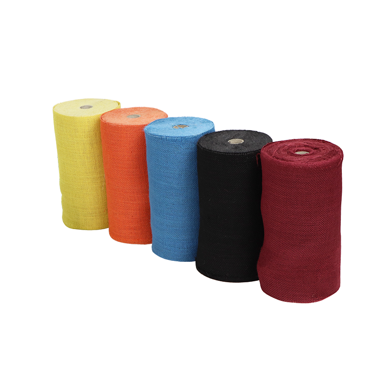 Gekleurd jute stof is een natuurlijk textielmateriaal dat gemaakt wordt van de bastvezels van de juteplant, maar dan geverfd in verschillende kleuren. Jute staat bekend om zijn grove structuur en wordt vaak gebruikt in toepassingen zoals zakken, tassen, wanddecoratie, en ambachtelijke projecten.