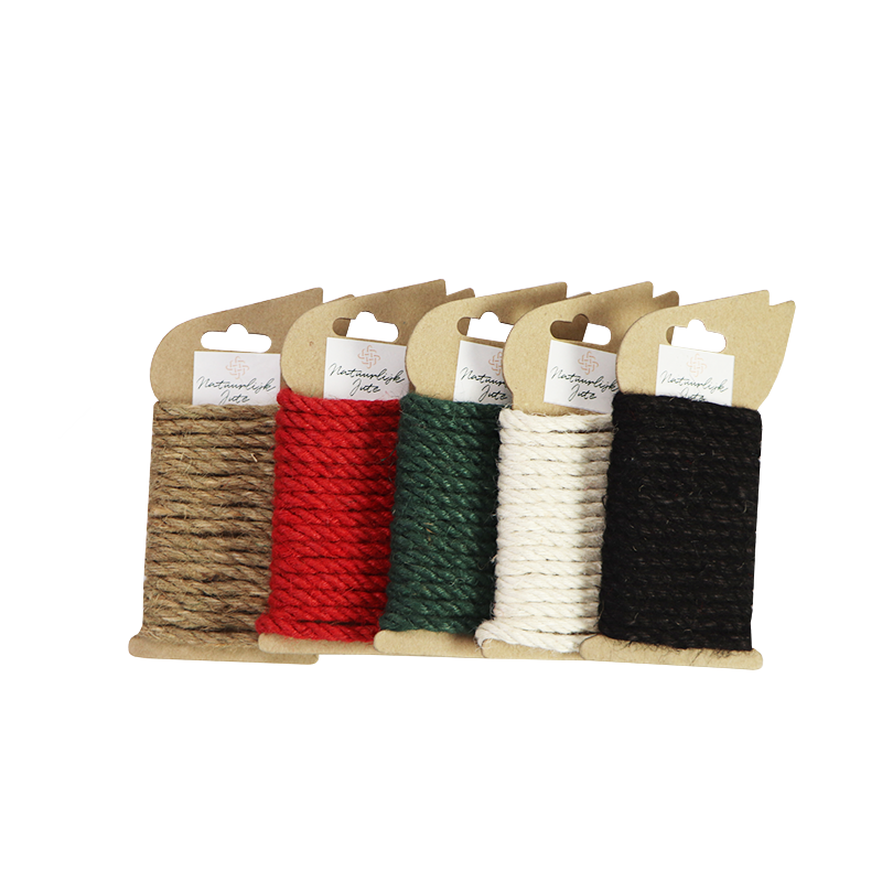 Vervolgens worden meerdere jute garens samengedraaid (getwijnd) tot touw van verschillende diktes. Hoe meer strengen je samenvoegt, hoe dikker en sterker het touw wordt.